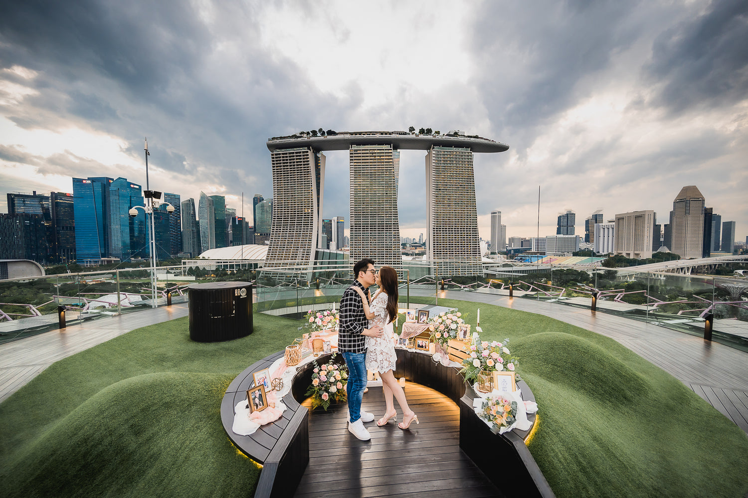 Elevate your proposal to a new level with a breathtaking view of Gardens by the Bay atop the tallest Supertree. At 16-storeys high, you and your partner can enjoy unblocked views of the Marina Bay skyline. While strolling around the rooftop deck, against the backdrop of the stunning views, pop the question and watch your love story light up the night.