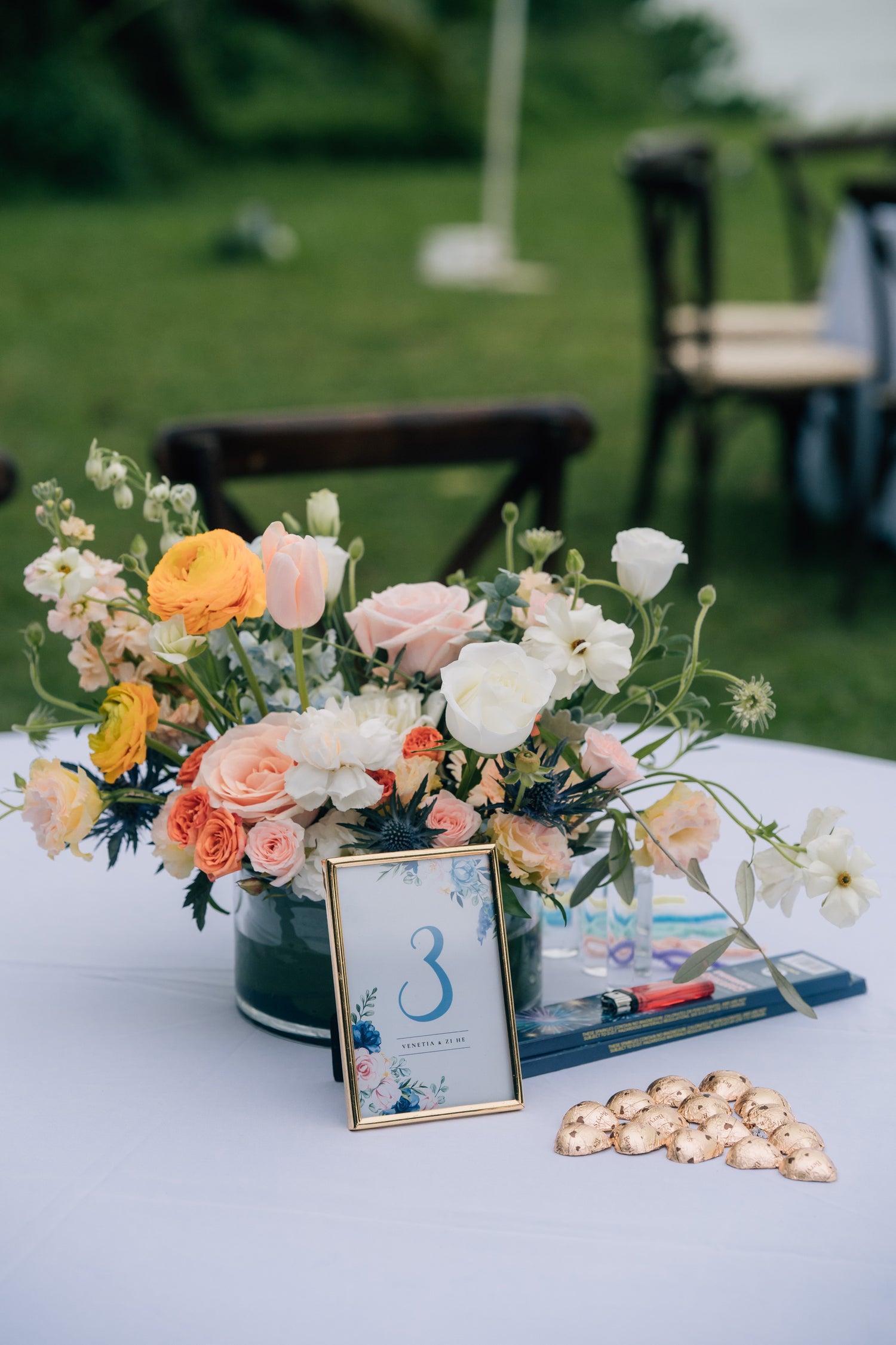 Z & V were whisked away to an island paradise surrounded by crystal-clear waters. A wedding with an unobstructed sea view offering a timeless and dreamlike landscape. Guests reveled in the magic of this idyllic location, where natural beauty, tranquility, and intimacy seamlessly blended to create a truly unforgettable celebration.