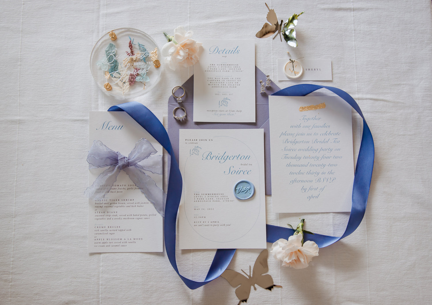Marrying a blend of upscale elegance of a modern bride and the rich vibrance of the Regency-era. Infused with dreamy jewel tones of mint and lilac, romance overflows in each photoshoot scene. This shoot is perfect for couples seeking poetic inspiration for their wedding style.