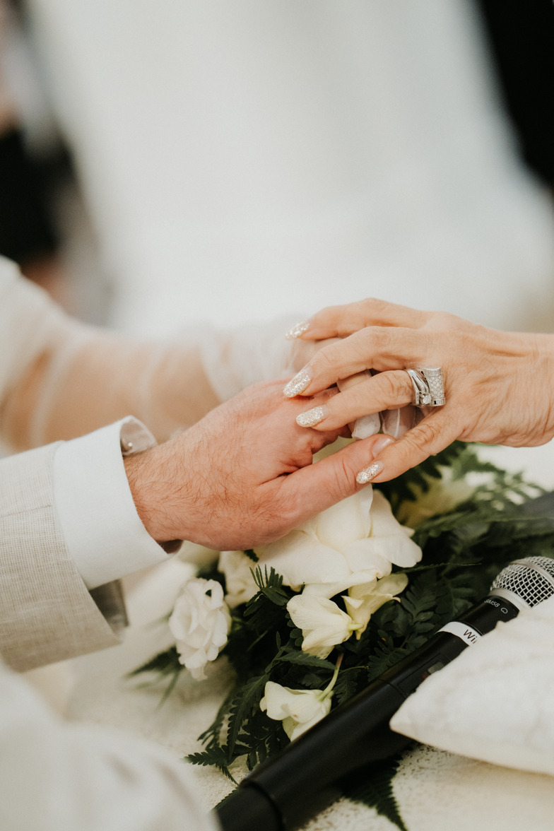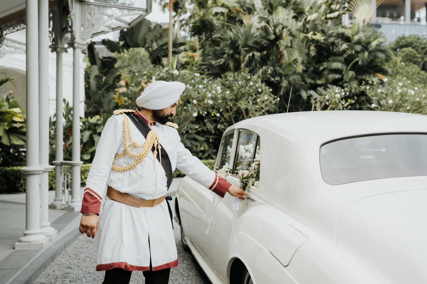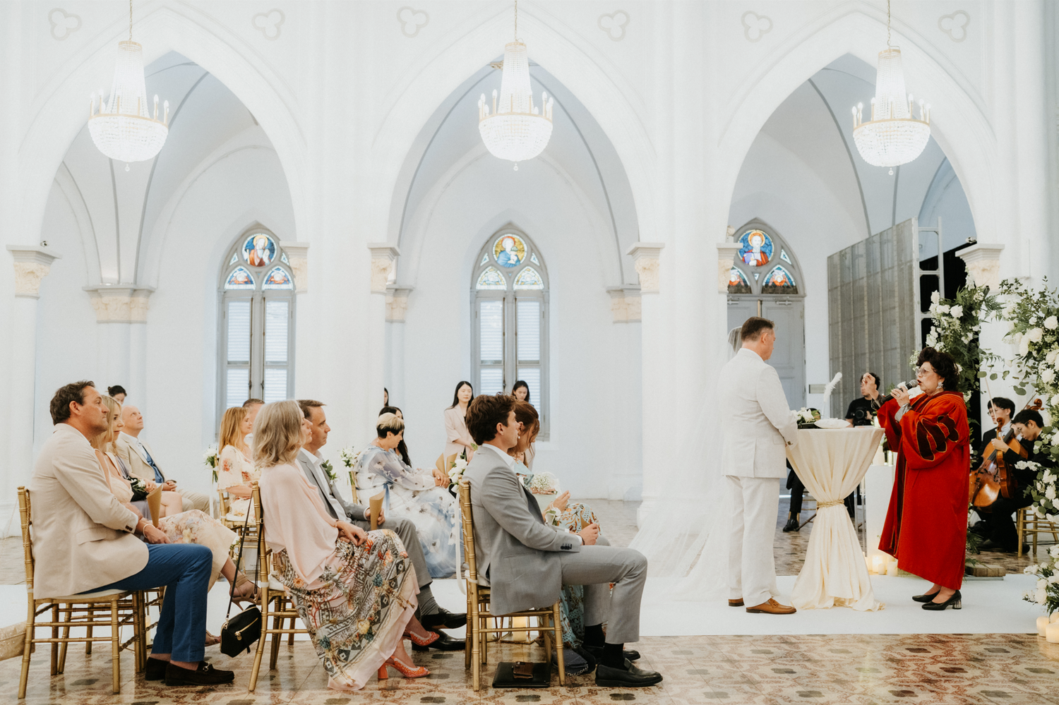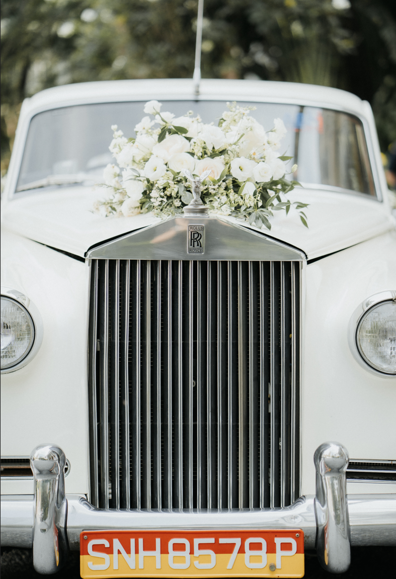 Elegantly styled in a timeless colour palette of green and white, this beautiful wedding ceremony was held at CHIJMES Hall Singapore. Coupled with a long white aisle carpet for the perfect march-in moment.