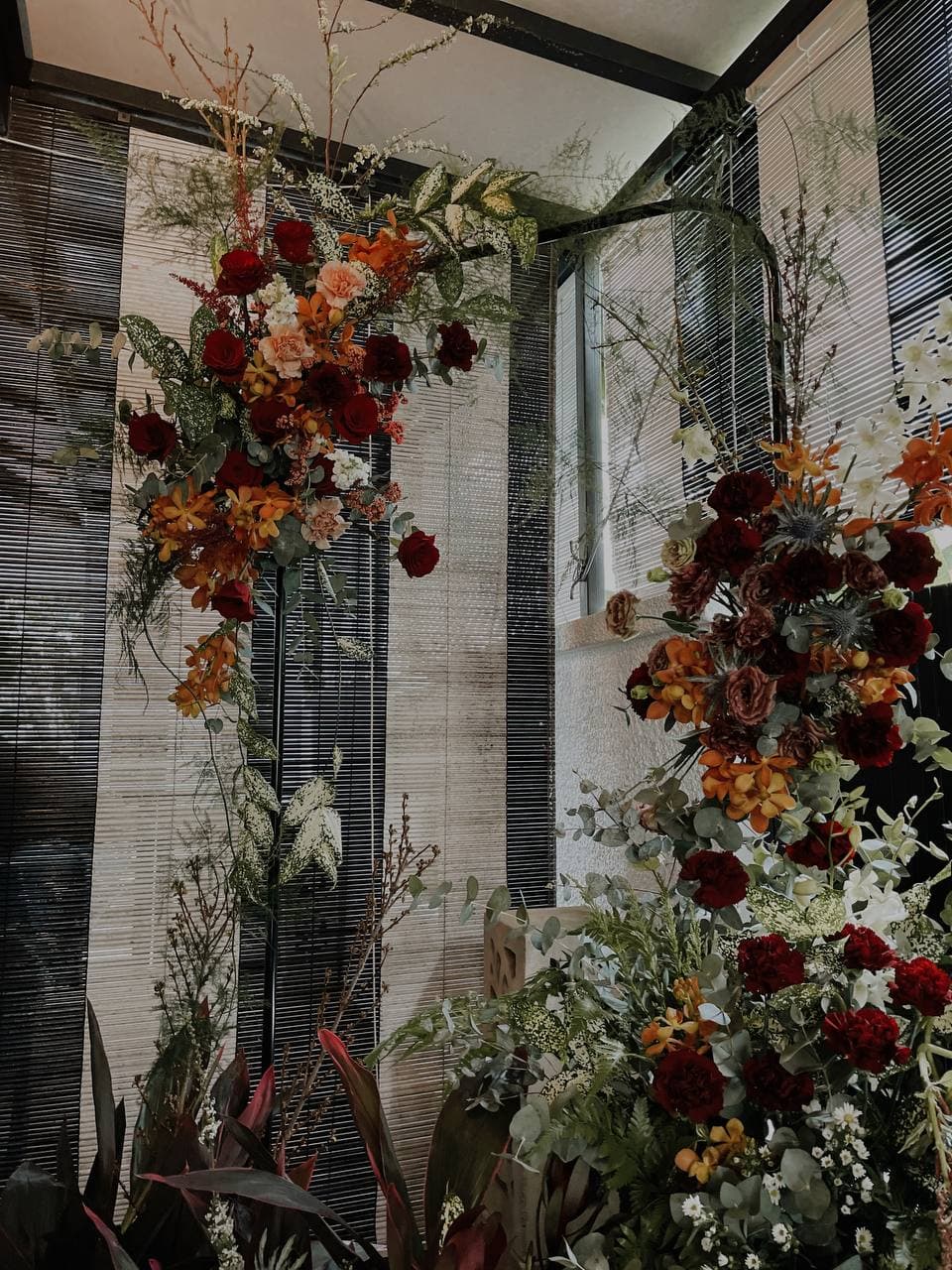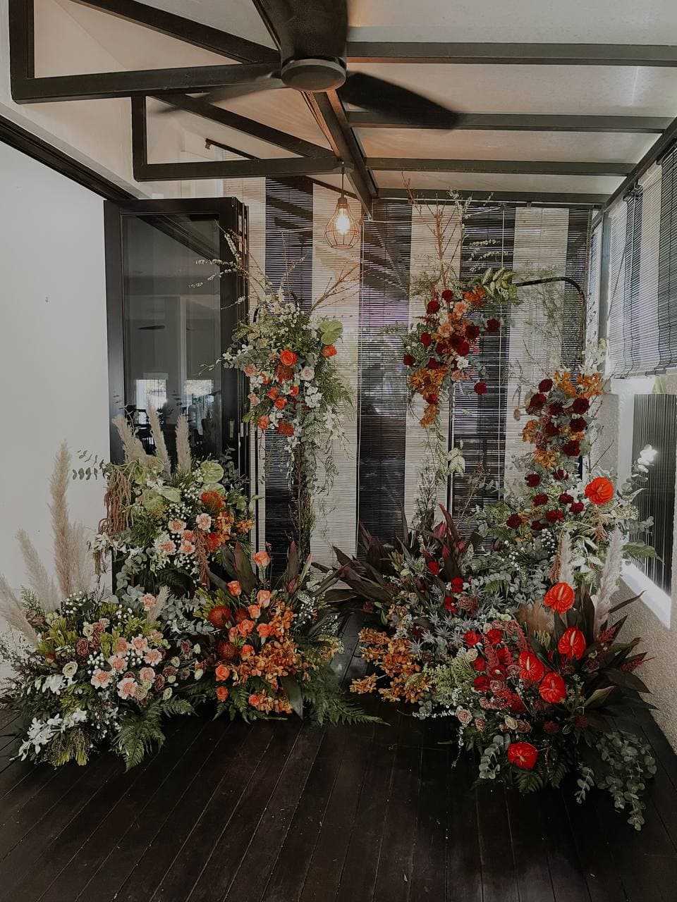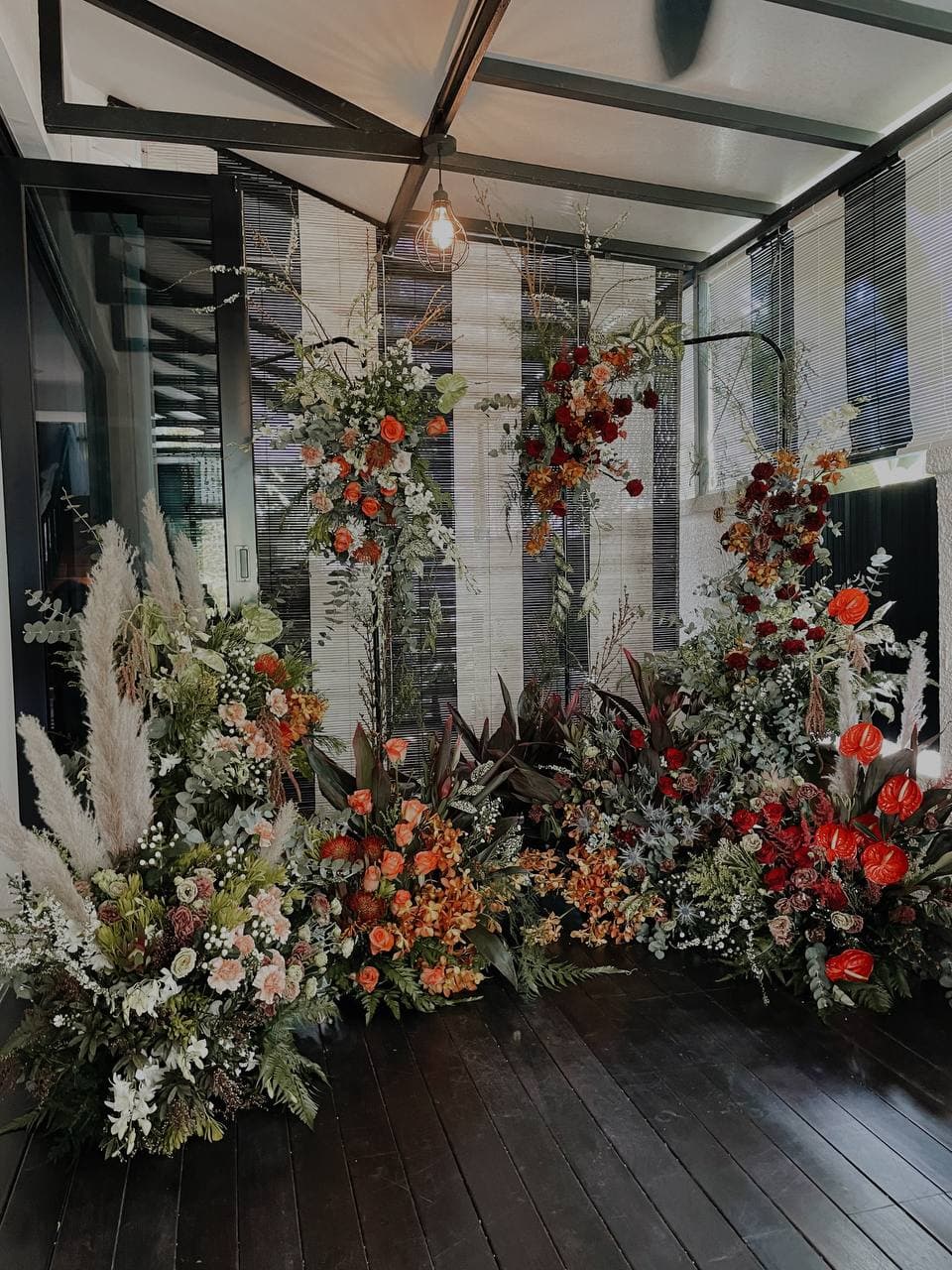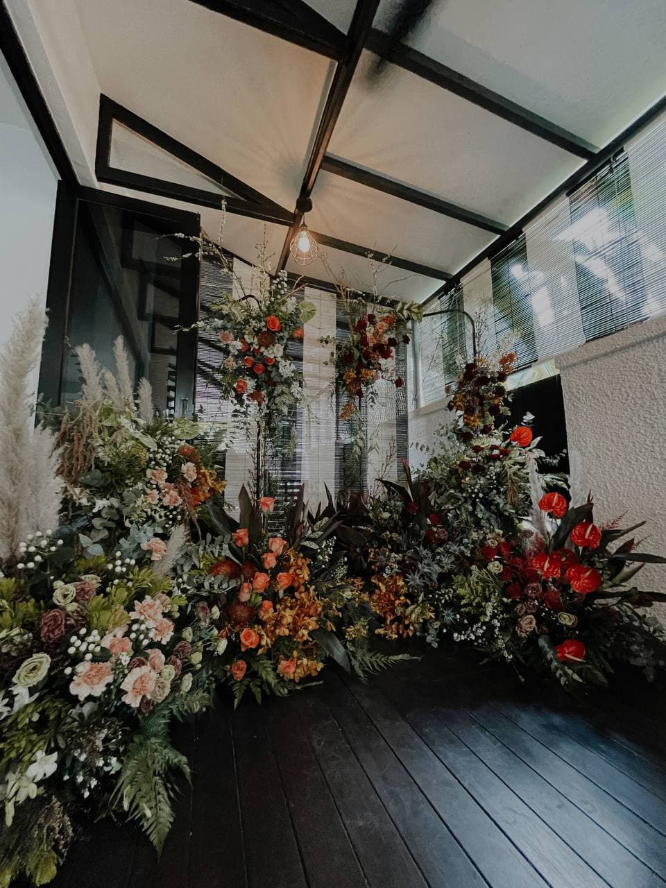 An intimate home solemnisation for our couple L & K. Styled a lush and wild floral installation with over 40 types of flora and fauna. Our creative bride even customised most of her own decor!
