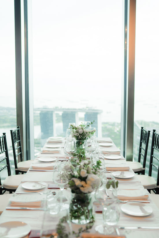 View MoreClassic and Modern, Green and White Botanical Solemnisation with an unblocked view of Marina Bay