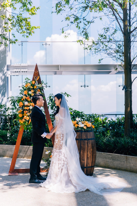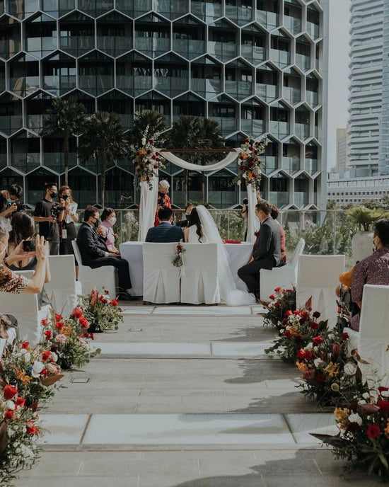 View MoreOutdoor solemnisation at Andaz Singapore rooftop terrace with vibrant blooms