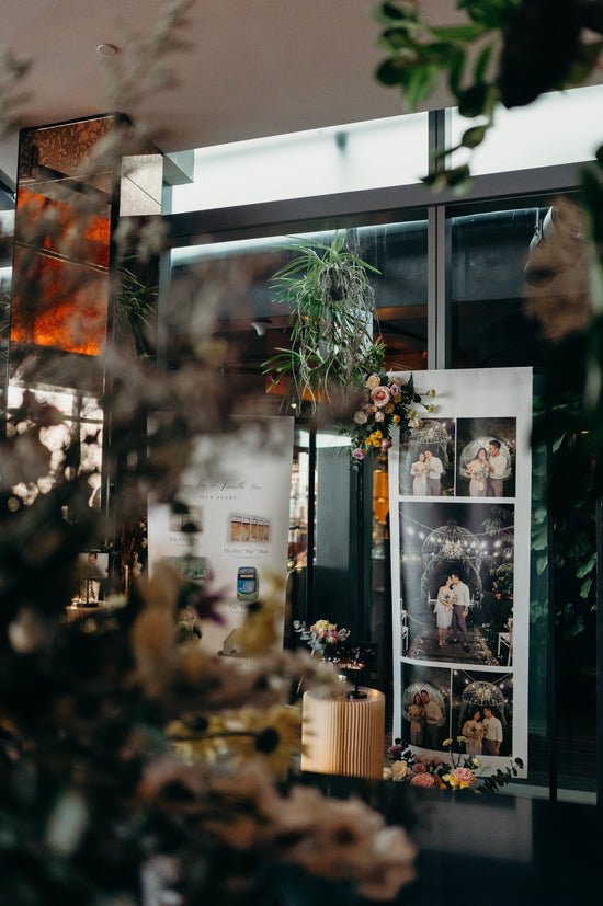 View moreWedding reception at The St. Regis Singapore featuring gallery-style wedding photo display