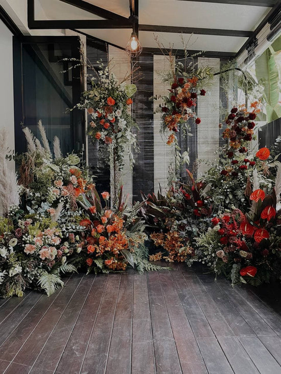 View MoreContemporary Chinese restaurant wedding styled in autumn-inspired colours for a rich romantic look, with floral-lined tables