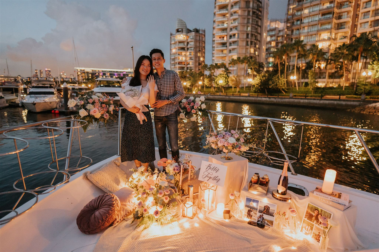 View MoreGorgeous blooms adorn the yacht, extra dreamy for when she says yes!